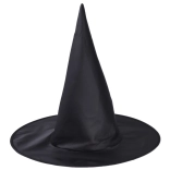 - Spids sort hat, luftig nederdel med elastik, sammenklappelig kost