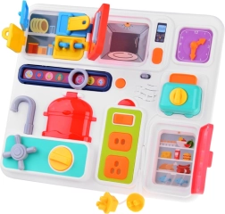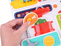 Interaktiv køkkentavle sikrer timevis af sjov for de mindste. Den er lavet af plastik af høj kvalitet og indeholder mange elementer, der stimulerer den intellektuelle aktivitet. Med ledsagelse af melodiske lyde og blinkende lys er hver leg unik.