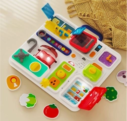 Interaktiv køkkentavle er en fantastisk måde at underholde og udvikle dit barn på. Dette farverige værktøj tilbyder mange knapper og kontakter med lys- og lydeffekter til at støtte fantasi og motoriske færdigheder.