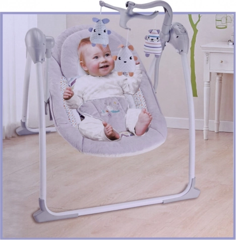 Elektrisk barnesving Yokomisiada kombinerer moderne design med praktiske funktioner til at sikre komfort og sikkerhed for dit barn. Den har flere svingtilstande, der efterligner naturlige bevægelser samt mulighed for at afspille vuggeviser og naturlyde for hurtigere indsovning.