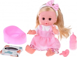 Dukken har en realistisk tissefunktion, der tilføjer et ekstra lag af sjov til babyplejelegen.