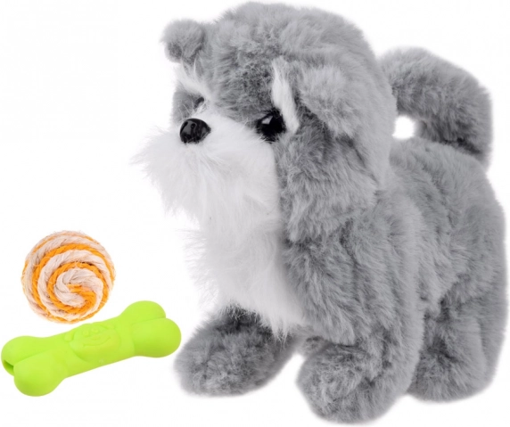 Den interaktive grå hundehvalp er et fantastisk legetøj til børn, der vil lege med mere end bare en almindelig plysbamse. Denne hvalp gør ikke kun gø og pibe, men går også frem og bakker, bevæger hovedet, åbner og lukker munden og vifter med halen. Hvalpen kommer desuden med legesygt tilbehør — en blød gummiknogle og en farverig bold.• Interaktion og bevægelse• Masser af sjov og forskellige aktiviteter• Udvikler børns kreativitet og fantasi