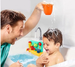 Oplev glæden ved at bade med dette interaktive legetøj, som let fastgøres til væggen af badekarret med sugekopper. Indeholder forskellige farverige elementer, der reagerer på vand og giver sjove vandeffekter. Legetøjet hjælper med at udvikle motoriske færdigheder og hånd-øje-koordination.