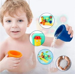 Farverigt badetøj bringer sjov og læring til hvert barn under badetiden. Let at fastgøre på badekarret og giver interaktive vandeffekter.