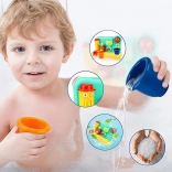 Det er bare at hælde vand med en bruser eller den medfølgende kop i den øverste del af legetøjet og se vandet passere gennem de forskellige dele og skabe forskellige effekter: