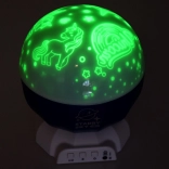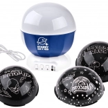Projektoren er udstyret med en LED-base og tre udskiftelige kupler med Halloween-, enhjørninge- og dinosaurmotiver. Hver kuppel byder på forskellige mønstre, der tilpasser atmosfæren i rummet. Sættet indeholder et USB-kabel for nem strømforsyning samt mulighed for at bruge 3x AA-batterier (medfølger ikke).