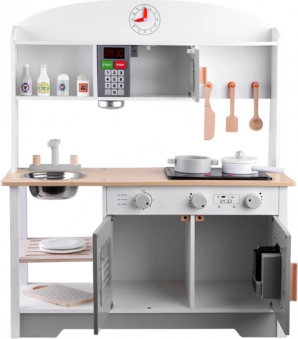 Dette børnekøkken er æstetisk lavet og sikrer ikke kun fremragende underholdning, men bidrager også til barnets udvikling. Børn elsker at efterligne voksne, og dette køkken giver dem mulighed for at lege madlavning, rengøring og andre huslige aktiviteter.
