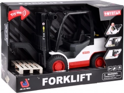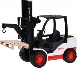 Gaffeltruck er præcist lavet af plast og designet til at ligne en ægte maskine. Den har friktionsdrift, der gør det muligt at bevæge sig på forskellige overflader. Den indeholder forskellige lydeffekter, som motorstart, arbejdsgange og bakkealarmen.