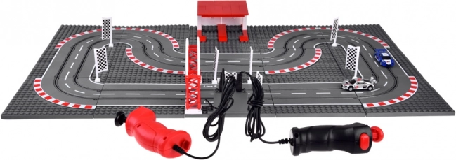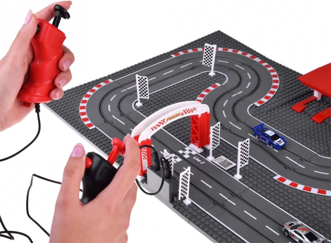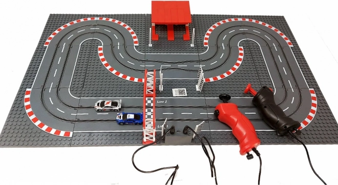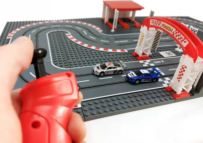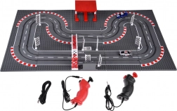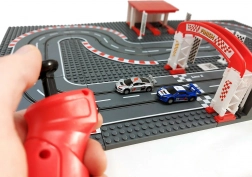 Den modulære base med 15 plader og dele til START/MÅL og parkering gør det muligt at bygge dine egne konstruktioner af klodser omkring banen og ændre banen, som du har lyst.