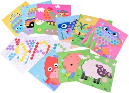 Inkluderer 10 billedskabeloner og 5 mønsterforlæg. Børn kan lægge dyr og transportmidler eller skabe deres egne mosaikker.