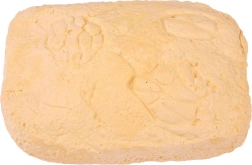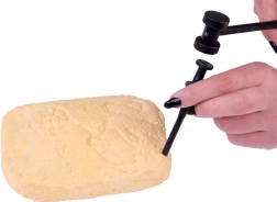 En solid, men let bearbejdelig gipsblok gør det muligt for børn sikkert og gradvist at afsløre de skjulte sten direkte ved bordet.