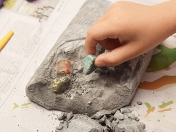 I gipsblokken finder du en farverig samling mineraler, som efter udgravning og rengøring udvider barnets samling og vækker interesse for geologi.