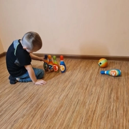 Oplev glæden ved bowling hjemme hos jer. Børnekeglerne fra Kruzzel er lavet af blødt og holdbart PU-skum, som dæmper stød og er skånsomt mod både møbler og gulv. De farverige kegler med store tal motiverer børn til bevægelse, udvikler øje–hånd-koordination og hjælper samtidig med at lære at tælle.