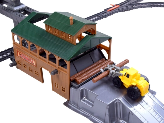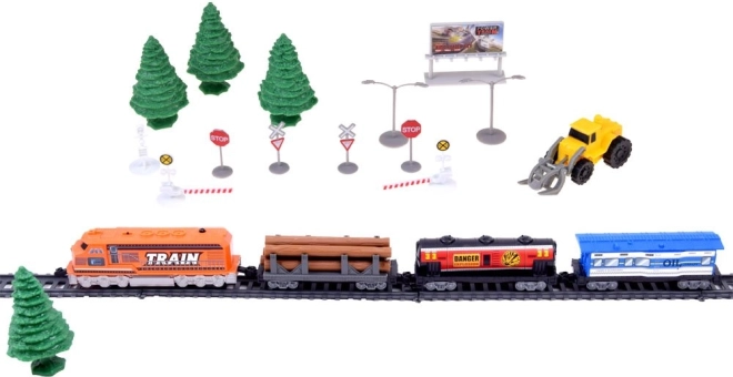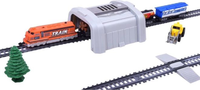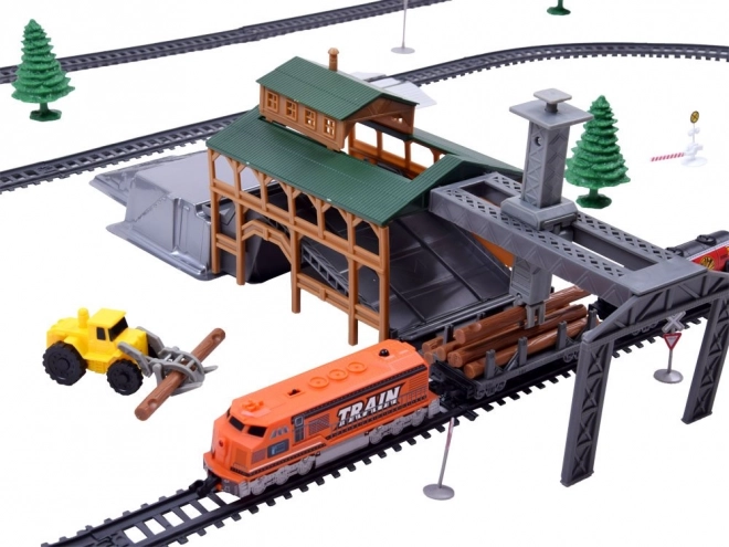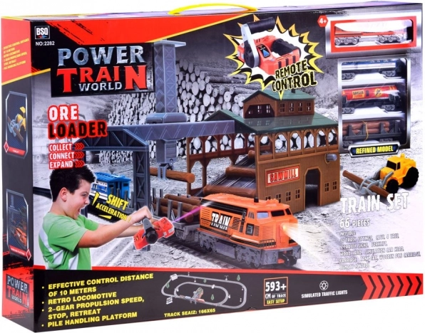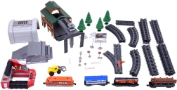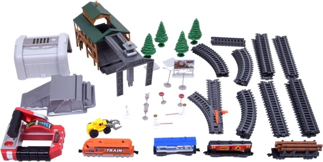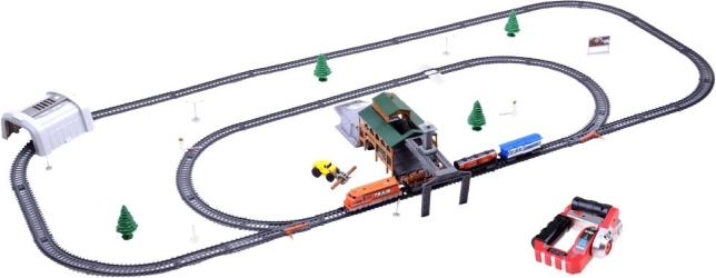 Byg din egen jernbane med et rigt udstyret sæt til børn: fjernstyret godstog, 66 dele, funktionel læssestation og modulære skinner. Toget kører frem i 2 hastigheder og tilbage i 1 hastighed. Der medfølger tunnel, skilte, træer samt særlige vogne – tankvogn, personvogn og tømmervogn.