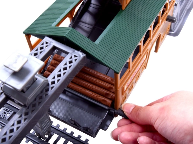 Dette togsæt i plast giver børn timevis af kreativ leg. Sættet omfatter et moderne lokomotiv med mulighed for at tilkoble forskellige vogne, realistiske tilbehør og især en læssestation med bevægelige dele til håndtering af kævler. Styringen sker via en kompakt IR-fjernbetjening med arm til valg af retning og hastighed.