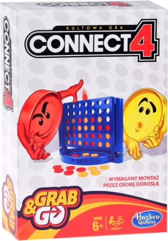 Lommeversionen af det populære spil CONNECT 4 for to spillere bringer smart underholdning på farten. Slip jetoner ned i gitteret og forsøg at forbinde fire på stribe før modstanderen – lodret, vandret eller diagonalt. Takket være den sammenklappelige bakke og integreret opbevaring i brættet er alle dele lette at pakke væk. Udvikler logisk tænkning, strategi, koncentration og fingerfærdighed.