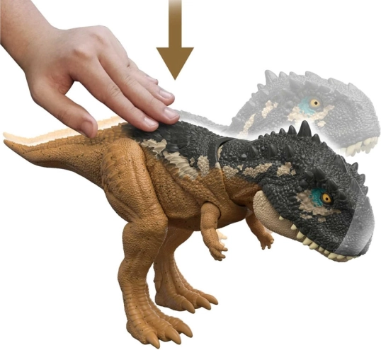 Dinosauren har bevægelige dele, som muliggør interaktion; for eksempel udsender dens krop, hale og hoved lyde og bevæger sig, når du presser på dem. Det er en fantastisk tilføjelse til din hyldeudstilling eller til actionleg.