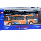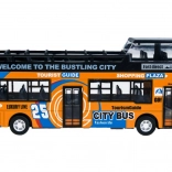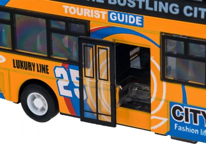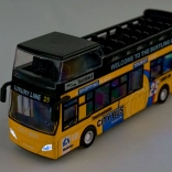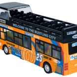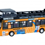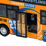 Denne detaljerede model af en by-dobbeltdækkerbus vil begejstre hvert barn. Den robuste kombination af metal og plast sikrer holdbarhed, mens de åbningsbare skydedøre og den indvendige belysning giver en autentisk køreoplevelse.
