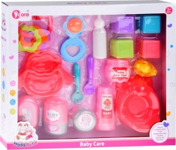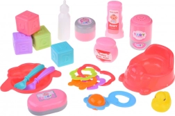 Takket være de lyse farver og variationen er sættet ideelt til kreativ leg. Alle stykker er lavet af holdbar plastik, der er sikkert for børn, og imiterer rigtige børns behov.
