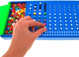 Det store antal farvede pinde og det kompakte panel med rum sørger for orden selv under længere spilsessioner og gør det let at tage med.