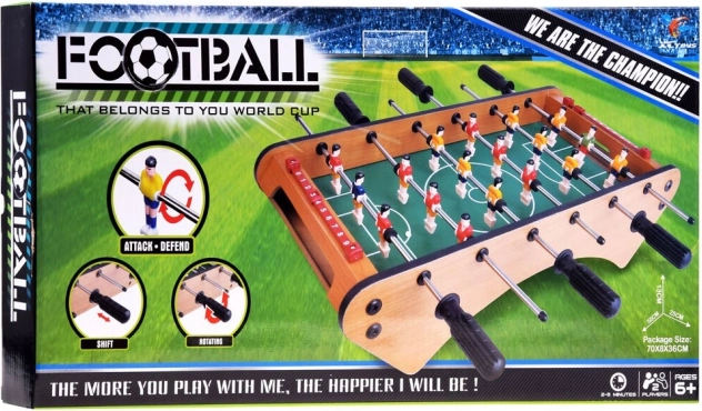 Den mini bordfodbold bringer stemningen fra en rigtig kamp ind i stuen. To farvemæssigt adskilte hold, glidende figurbevægelser på metalstænger og et overskueligt måltællerpanel sørger for spændende dueller og effektiv reaktionstræning. Ideel til både børn og voksne.