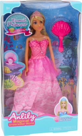 Oplev magien i undervandsverdenen med dukken ANLILY – en havprinsesse i elegante lyserøde kjoler og med en strålende krone. Med den medfølgende hårbørste kan børn kæmme hendes lange gyldne hår og udvikle deres kreativitet og fantasi. Certificeret CE og i overensstemmelse med EN71 for sikker leg fra 3 år.