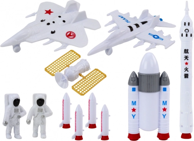 Sæt af astronautfigurer inkluderer figurer af astronauter i unikke rumdragter. Udover dem indeholder sættet også raketter i forskellige størrelser og former.
