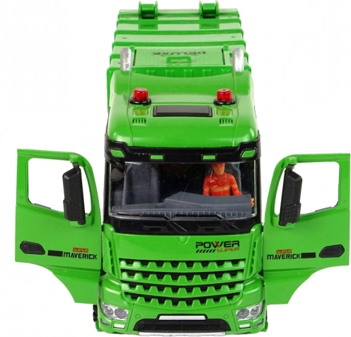 Bagerste containerlåger og kabinedøre kan åbnes. Køretøjet kan dermed også bruges som opbevaringsplads til små legetøj og giver legen ekstra autenticitet.