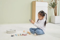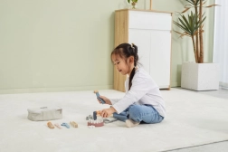 Alt er samlet i en robust bærbar taske, så sættet er nemt at transportere og opbevare. Kvalitetslakeret træ og giftfri farver sikrer sikker og langvarig leg. Den ideelle gave til små tandlæger.