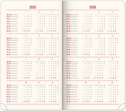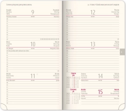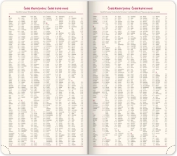 Den elegante lommekalender Diamante 2025 i rød farve tilbyder en praktisk ugeoversigt med tjekkisk-slovakisk kalendarium og supplerende sprog. Ideel til daglig planlægning på farten – kompakt format, høj kvalitet og nyttige oversigter. Måneds- og årsplanlæggere, kort over Tjekkiet og Slovakiet, tekstilbogmærke og perforerede hjørner gør det let at orientere sig og holde styr på alting.
