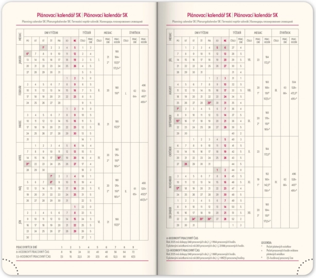 - Arbejdsplanlægger og oversigt over helligdage i CZ og SK samt internationale helligdage.
