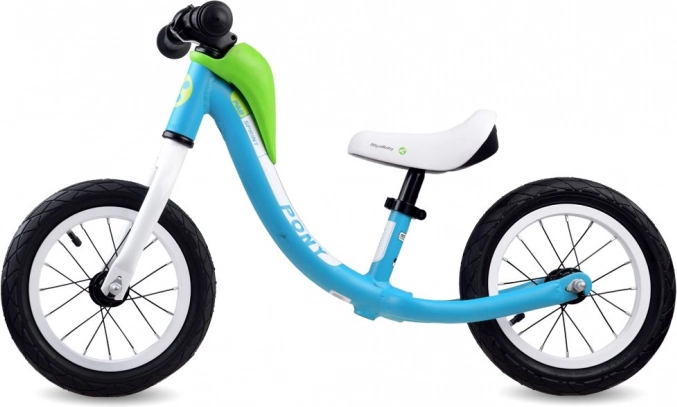 Den lette børne-løbecykel RoyalBaby PONY Sprint med 12" oppustelige hjul og aluminiumsramme hjælper børn fra ca. 3 år med at udvikle balance og selvtillid. Takket være den lavt placerede ramme, hurtig sædejustering og skridsikre greb er kørslen sikker og komfortabel. De oppustelige 12" hjul giver en blød og stabil tur, mens den praktiske bærerem og opbevaring i sadlen gør det lettere for forældre at bære cyklen.