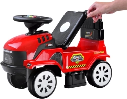 Traktor-gåbilen er et fremragende valg som det første køretøj til børn. Takket være de kompakte mål passer den både i lejligheden og i haven. Rattet med knapper afspiller glade melodier og ledsagende lyseffekter (strømforsyning 2× AA, medfølger ikke). Sædet med ryglæn sikrer komfort og korrekt siddestilling, mens den bageste spærring beskytter mod at vælte bagover.