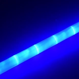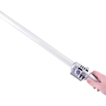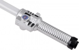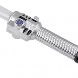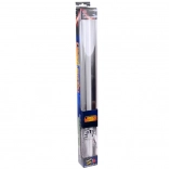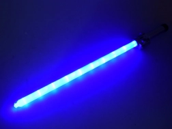 Tryk på knappen på håndtaget, og klingen lyser op med et klart blåt lys, som fremhæver enhver duel og ethvert kostume.