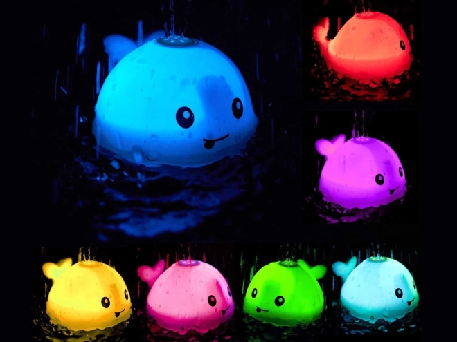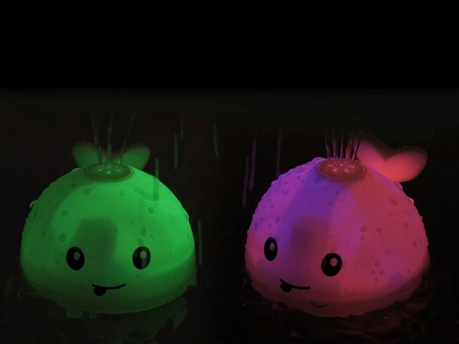 Efter nedsænkning starter hvalen automatisk og skaber en lille vandsøjle med skiftende farver – fanger straks opmærksomheden og underholder ved hvert bad.