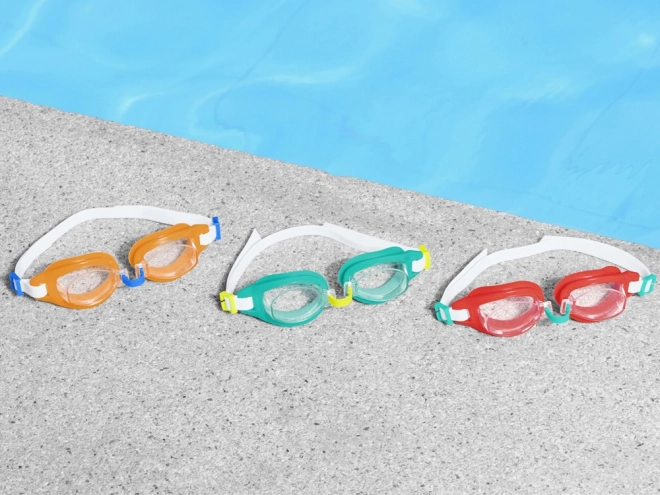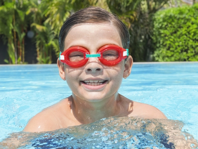 Giv børnene tryghed ved de første svømmetag og sjov leg i vandet. Bestway Aqua Burst-brillerne kombinerer sikkerhed og komfort: slagfaste polykarbonatlinser med UV-beskyttelse og antifog-lag holder synet klart uden dug, mens bløde øjekopper og en glat silikonerem sikrer behagelig brug hele dagen.
