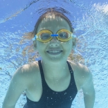 Bløde øjenkopper og en bred siliconerem tilpasser sig barnets hoved. Fuld justerbar næsebro for perfekt fit uden trykmærker.