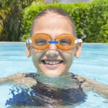 Letvægtssvømmebriller til børn Bestway Aqua Burst til alder 7+ tilbyder holdbare polykarbonatlinser, UV-beskyttelse og antifog-behandling for klar udsigt under vandet. Takket være bløde tætningslister, justerbar næsebro og siliconerem sidder de perfekt og behageligt uden at lække.