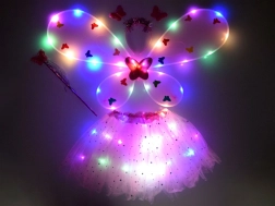 Integrerede LED-dioder i skørt og vinger lyser enhver udklædningsfest op og giver en eventyrlig stemning i tusmørket.