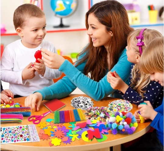 Giv plads til børns fantasi med dette kreative sæt. Det indeholder forskellige komponenter, såsom øjne, fjer, filt og mere, der muliggør skabelsen af unikke værker. Bredt udvalg af farver, former og teksturer tilbyder uendelige muligheder for kreativ udfoldelse.