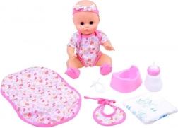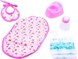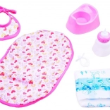 I pakken finder du alt til komplet pleje – hagesmæk, sutteflaske, sut, ble og potte. Gør dukken klar til både fodring og bleskift.