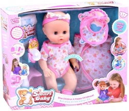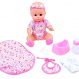 Sød interaktiv dukke med lukkebare øjne og realistiske babylie, der giver børn timevis af omsorg og fantasi. Hun kan drikke af sutteflaske og derefter tisse på potten, har bevægelige arme og ben, og hendes øjne lukker når hun “sover”. Der medfølger et rigt sæt tilbehør til fodring og bleskift.