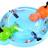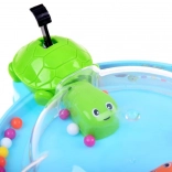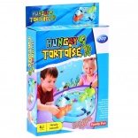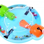 Spillet træner færdigheder, reflekser og lærer børn at genkende farver. Det er ideelt til gruppespil med venner eller hyggelige stunder med familien. Alle sætter sig komfortabelt rundt om den cirkulære base, trykker på håndtaget, hvorved skildpadderne åbner munden og forsøger at fange de rullende kugler.