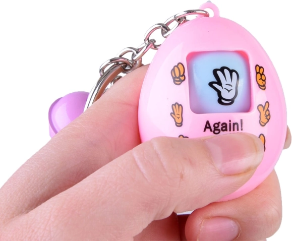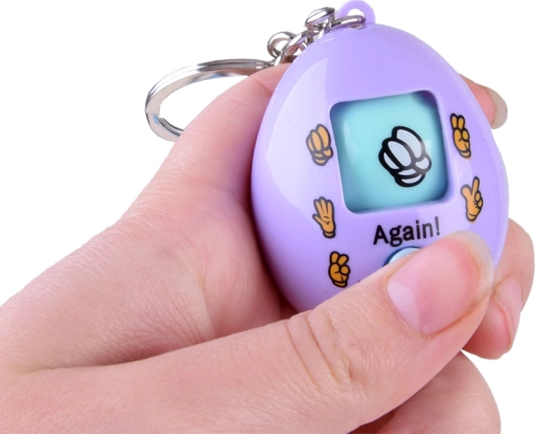 Leder du efter en lille gadget til hurtig underholdning på farten? Dette elektroniske vedhæng med det klassiske sten–saks–papir-spil gør ventetiden på bussen og pauser med venner mere hyggelige. Tryk blot på knappen, og resultatet vises på LCD-displayet – perfekt til hurtige beslutninger og minispil.