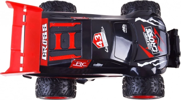 RC-bilen Cross Country er det ideelle valg for små entusiaster af fart og eventyr. Den robuste konstruktion, store hjul med dybt mønster og den forhøjede undervogn sikrer stabilitet og god trækkraft på forskellige underlag.