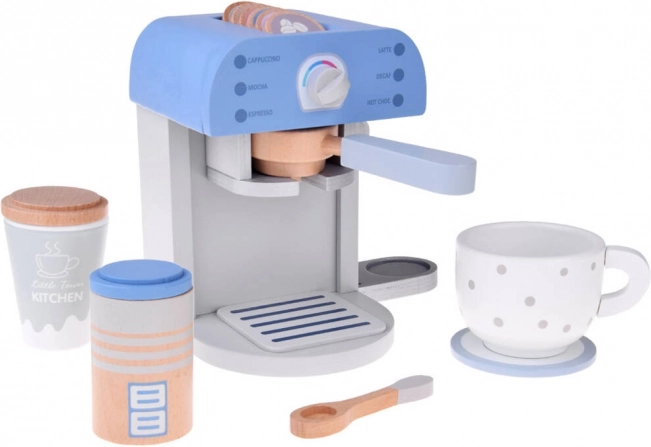 Træ kaffemaskine til børn i en elegant blå farve er det perfekte legetøj til ethvert børnekøkken. Dette stilfulde og kvalitetsfremstillede sæt indeholder kaffemaskine og tilbehør, der sikrer