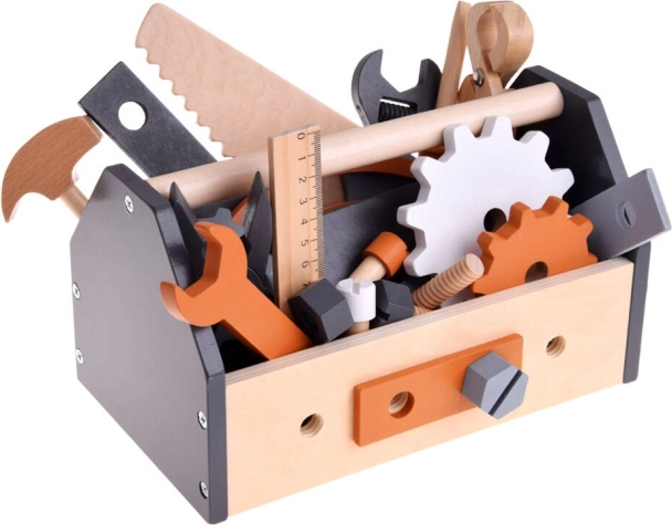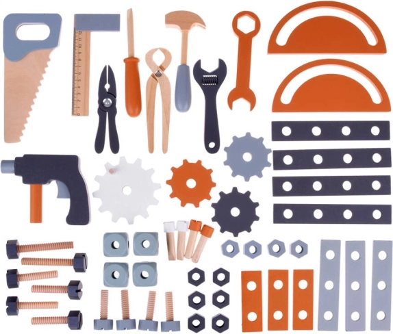 Sættet indeholder et bredt udvalg af værktøjer, såsom sav, boremaskine, hammer, skruenøgle, skruetrækkere og mere - ideelt til udvikling af praktiske færdigheder.