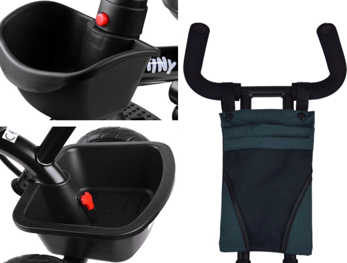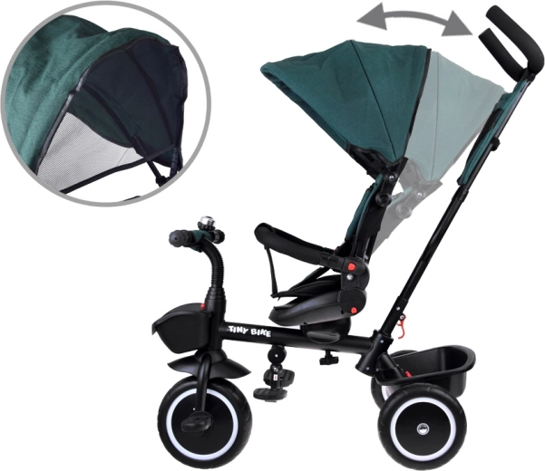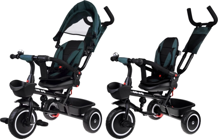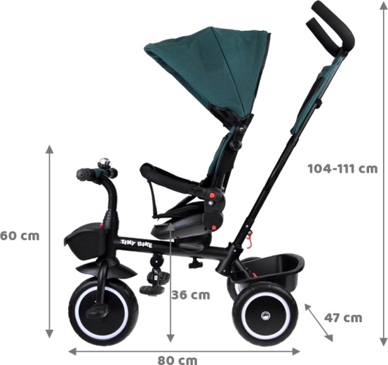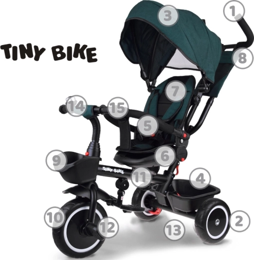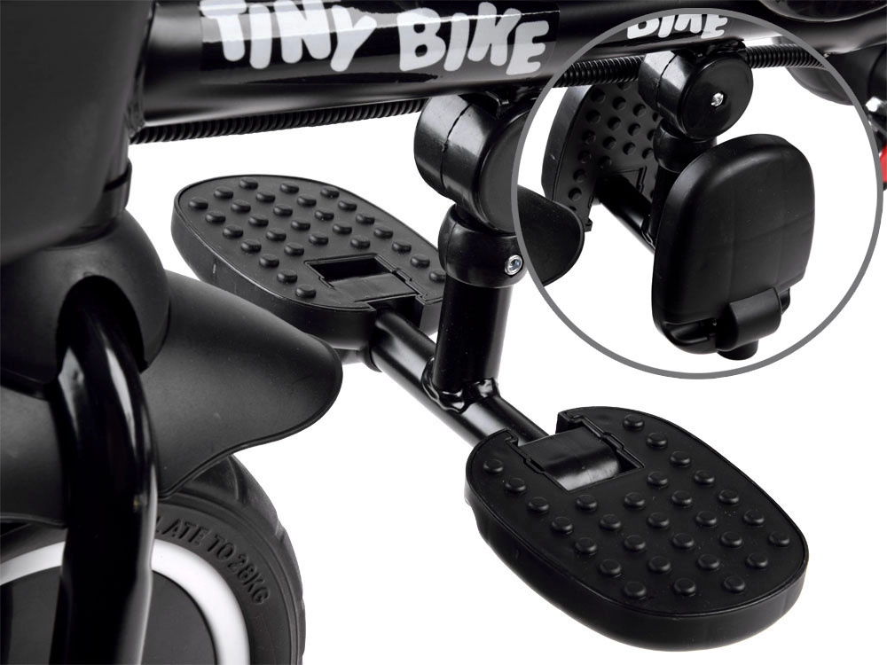 Den praktiske 3-i-1 børnetrehjuler TINY BIKE vokser med dit barn fra 6 måneder til 5 år. Den tilbyder et drejbart sæde, sammenklappelig kaleche med ventilation, 5-punkts seler, bremser på baghjulene og forældrestyring med justerbart håndtag. Slangeløse EVA-hjul, en solid stålramme og rigt udstyr sikrer komfort og sikkerhed på hver gåtur.