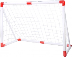 Pakken indeholder mål med net, bold, pumpe og 4 pløkker til fastgørelse – alt hvad børn behøver for at komme i gang med det samme.