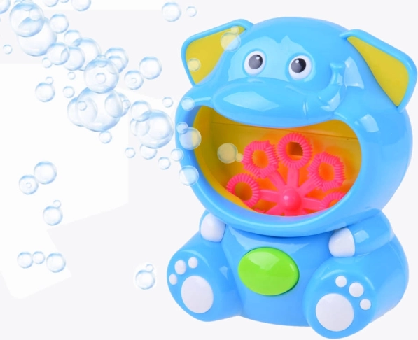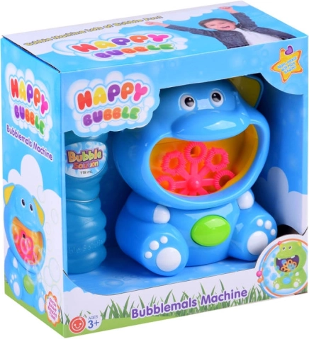 Denne boblemaskine i form af en sød blå elefant forvandler enhver eftermiddag til et magisk show. Inde i munden roterer en pink skive med øjer, og en integreret ventilator skaber masser af glitrende bobler uden besvær. Betjeningen er yderst enkel – hæld opløsningen i, tryk på frontknappen, og så er underholdningen i gang.